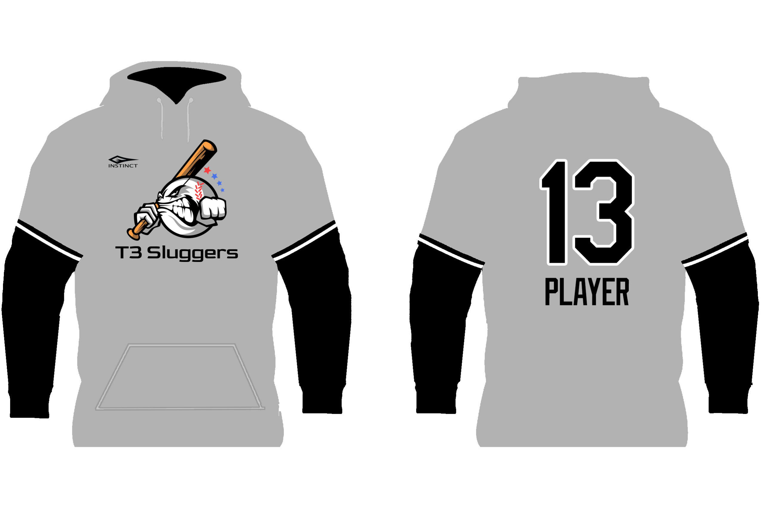 T3 Sluggers short sleeve lightweight hoodie! Dri fit, performance hoodie for practice or casual. Size chart is attached, measurements are on the garment, not the body. This is unisex sizing.
